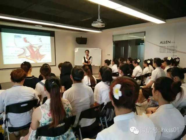 盛世黃玉蘭總監(jiān)為艾倫美容的寶貝們講解項(xiàng)目優(yōu)勢(shì)及專業(yè)知識(shí)