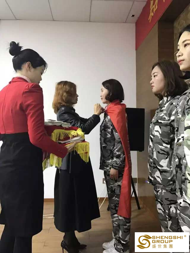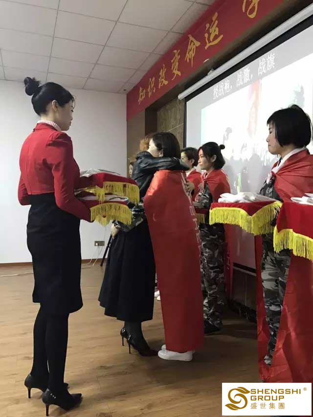 為新入職家人授戰(zhàn)袍、戰(zhàn)徽、戰(zhàn)旗